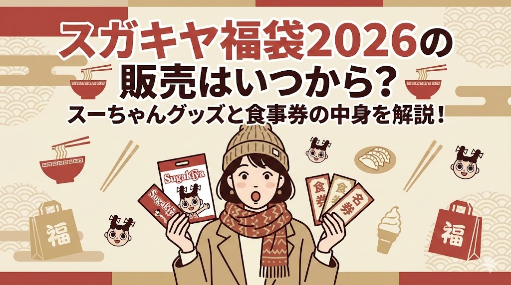 お得すぎる内容で毎年大人気のスガキヤ福袋2026について、中身の詳細や賢い買い方を詳しくご紹介します。おなじみのスーちゃんグッズを確実に手に入れるための情報をまとめました。