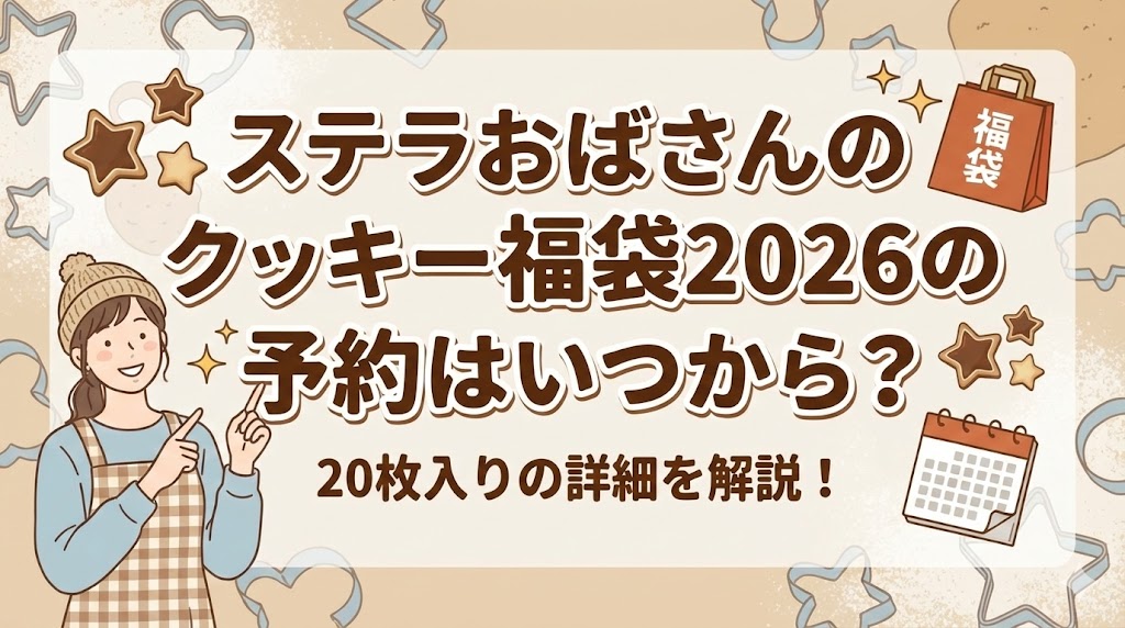 2026年の福袋情報を調べていると、「20枚入り」というキーワードをよく見かけます。実際の枚数はどうなのか、予約はいつから始まるのか、気になっている方も多いはずです。この記事では、ステラおばさんのクッキー福袋2026の最新情報をわかりやすく解説していきます。